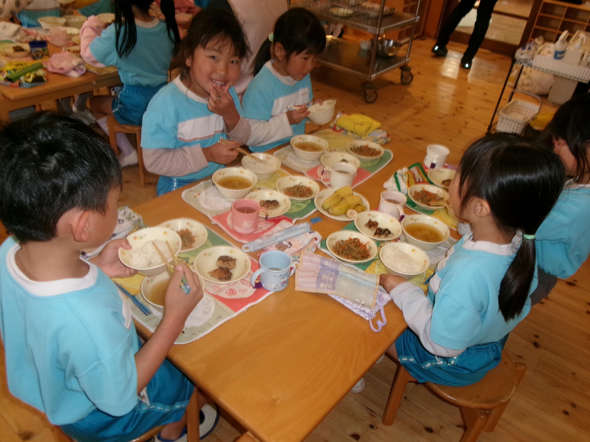 給食の時間は、グループの友達とのおしゃべりも、盛り上がる時間でした。